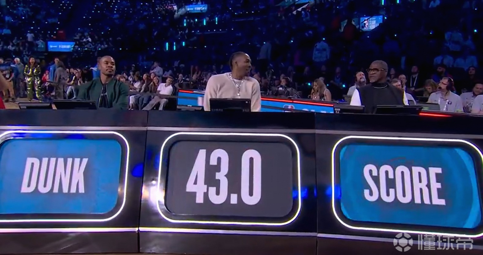 卡特-布莱恩特完成胯下大风车,得到本次扣篮大赛唯一一个满分扣篮,并将字母哥惊出“表情包”。