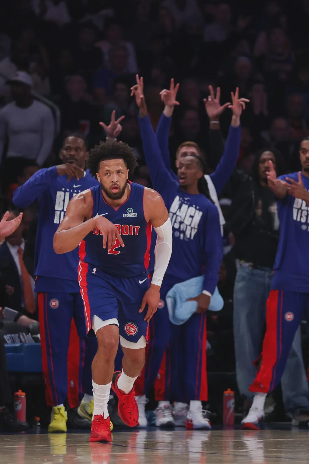 活塞状元坎宁安今天开启暴走模式:首发出战38分钟,34投17中,三分11中5,罚球3中3,狂轰42分8篮板13助攻1抢断2盖帽。他成为NBA历史上第三个在麦迪逊广场花园轰下40分+10助攻的客队球员,前两个是艾弗森和詹姆斯。