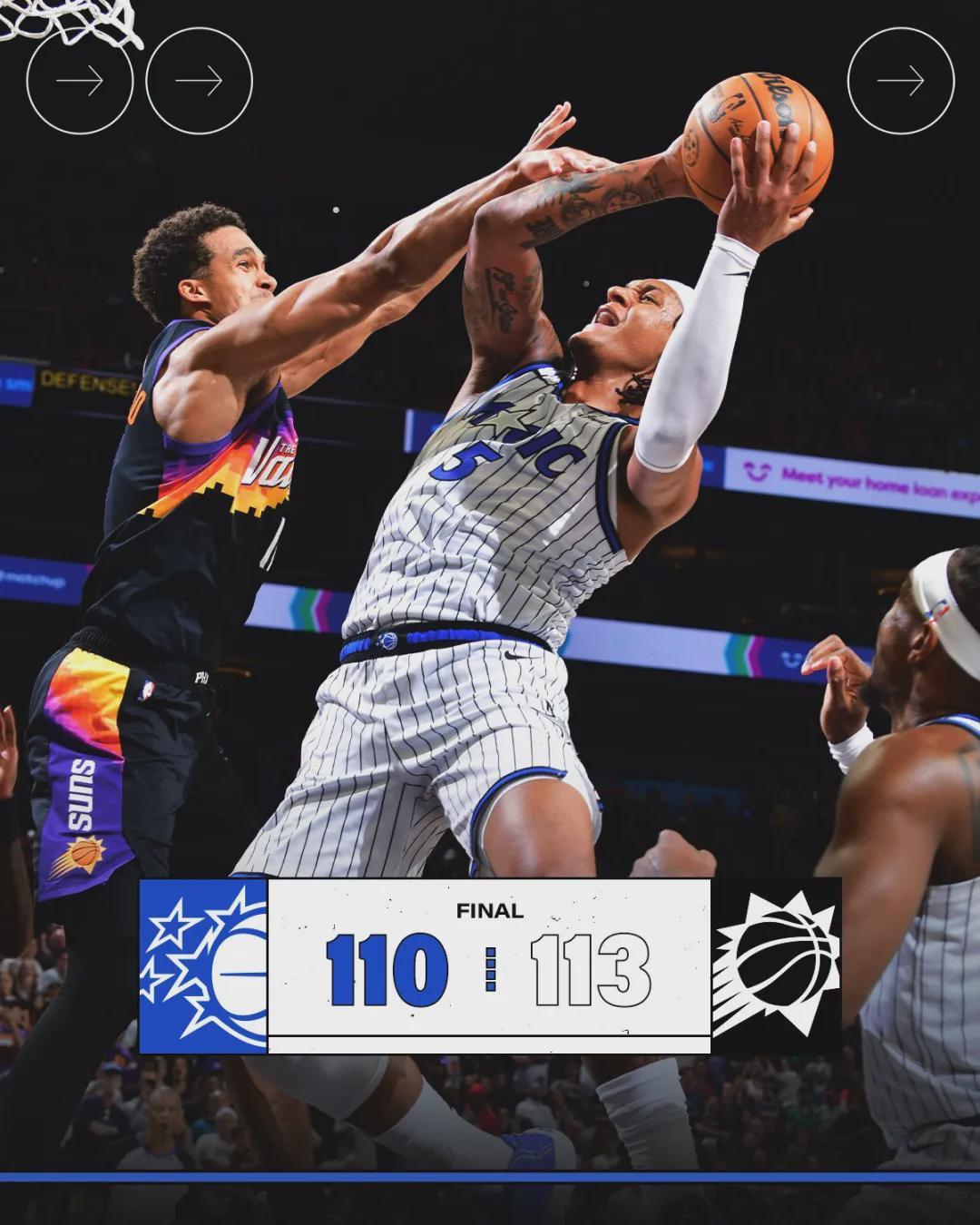 北京时间2月22日上午,刚刚结束的一场NBA常规赛:太阳主场历经双加时113-110险胜魔术。布克因伤缺席,狄龙只打了7分钟伤退。第二个加时赛最后1.1秒,两队战成110平,太阳前场边线球,榜眼杰伦-格林三分压哨绝杀!