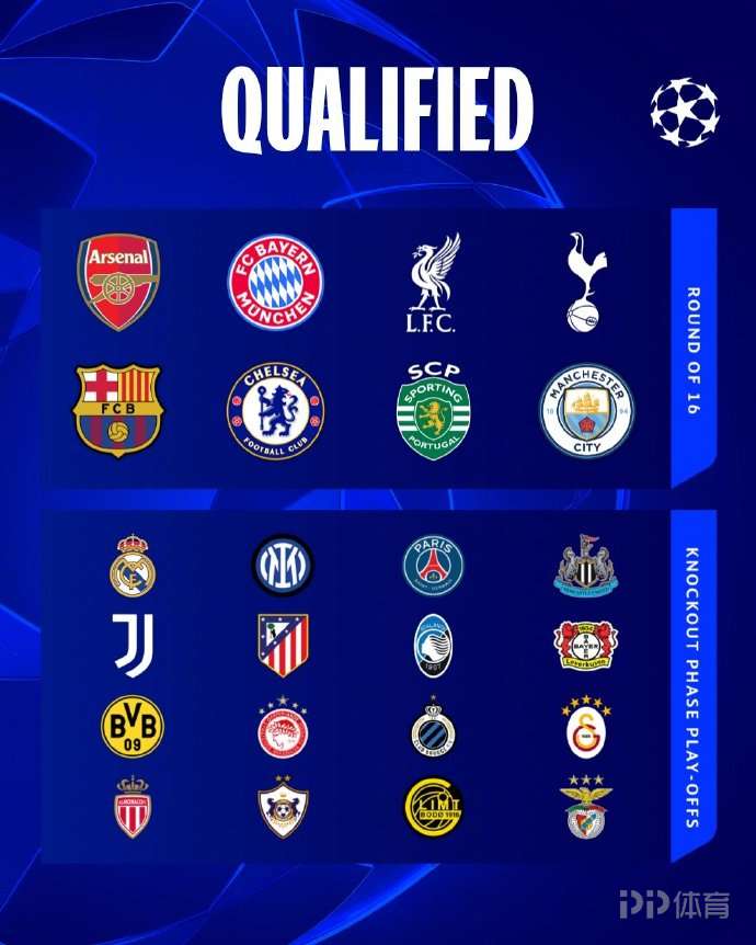 欧冠联赛阶段战罢,8支直通16强以及16支附加赛球队出炉。