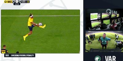 第14分钟,西马坎禁区内疑似手球,裁判示意没有问题
