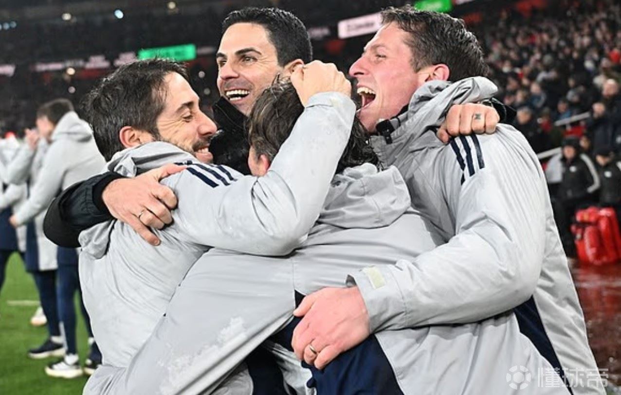 主帅阿尔特塔同样情绪激动,他与教练团队紧紧相拥,沉浸在执教阿森纳以来第二次闯入决赛的喜悦之中。
