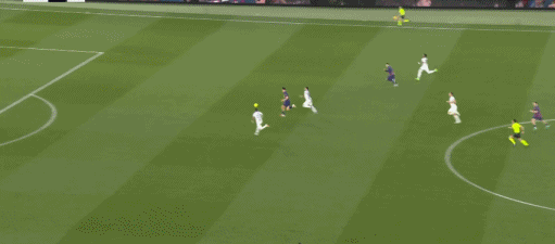 比赛第83分钟,贝尔纳尔突入禁区冷静扣过防守后射门击中防守球员折射入网,根据统计,这是贝尔纳尔代表巴萨一线队打进的首个进球。