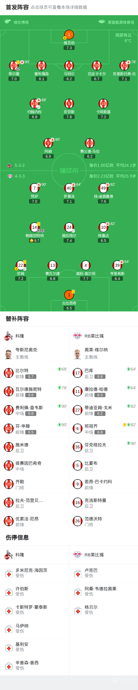 北京时间2月8日22:30德甲第21轮,科隆主场对阵莱比锡。上半场,鲍姆加特纳破门;下半场,蒂尔曼扳平比分,随后鲍姆加特纳再次得分帮助莱比锡锁定胜局,科隆队一次威胁进攻被判越位引发争议。最终科隆1-2不敌莱比锡。