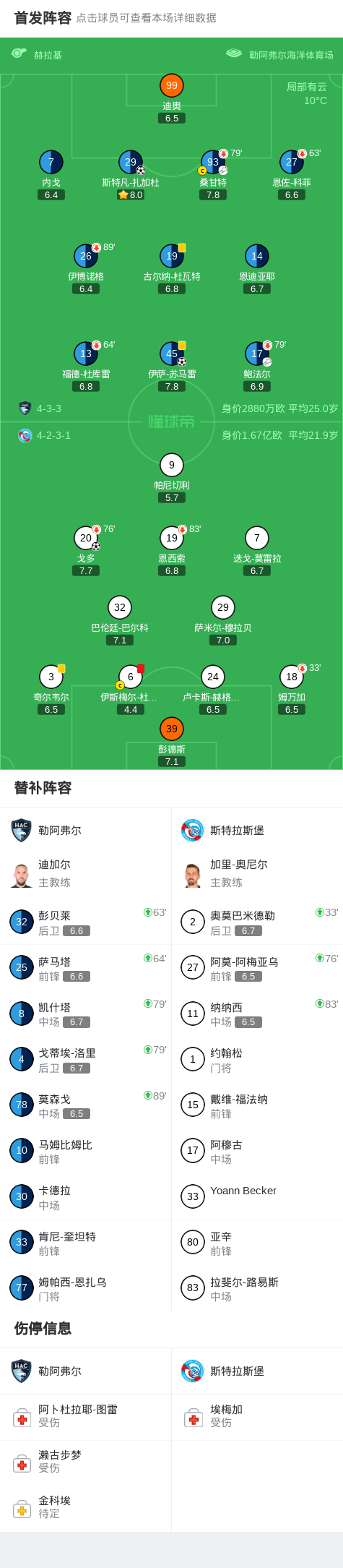 北京时间2月9日法国足球顶级联赛第21轮,勒阿弗尔主场迎战斯特拉斯堡。比赛中,勒阿弗尔球员通过配合由斯特凡-扎加杜率先破门;随后斯特拉斯堡一名球员吃到红牌,人数处于劣势;不久后斯特拉斯堡球员戈多扳平比分;下半场勒阿弗尔再通过配合由伊萨-苏马雷打入制胜球。最终勒阿弗尔2-1战胜斯特拉斯堡。