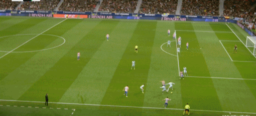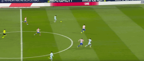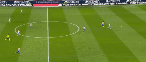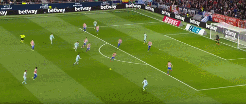 第83分钟,格列兹曼鞋尖越位,转播给出半自动越位系统画面