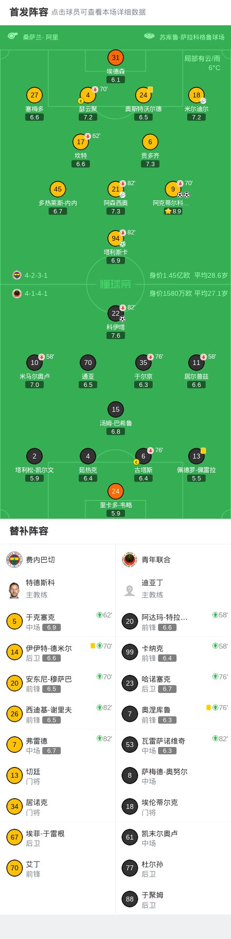 北京时间2月10日土耳其足球超级联赛 联赛 第21轮,费内巴切主场对阵青年联合。费内巴切塔利斯卡破门,阿克蒂尔科奥卢梅开二度。青年联合科伊塔破门。最终比分费内巴切 3-1 青年联合。