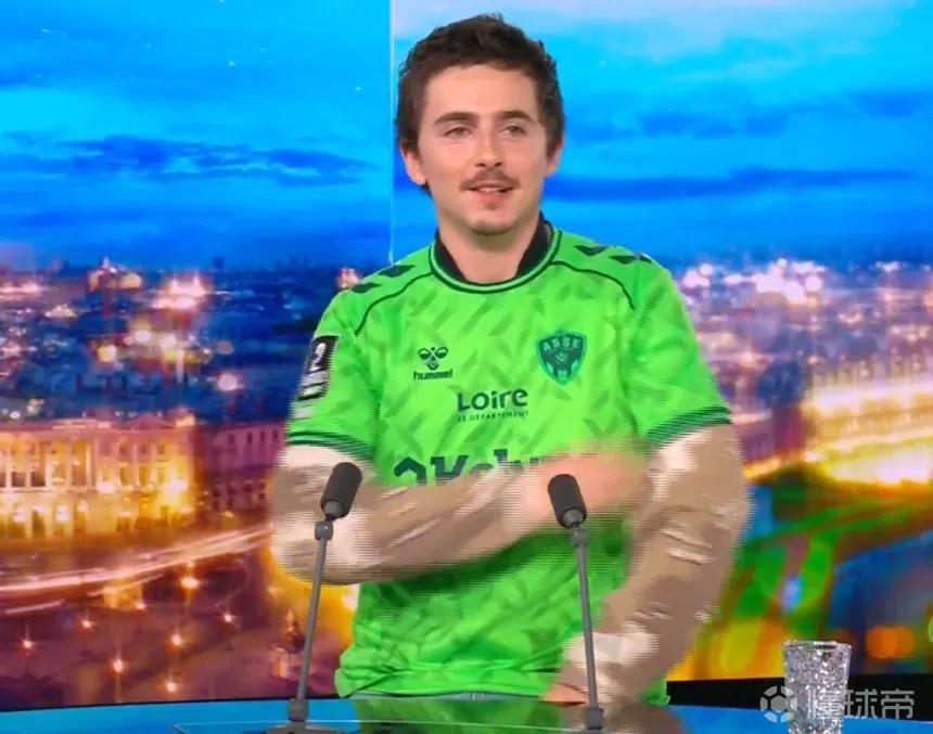 法国裔美籍演员蒂莫西-查拉梅,知名圣埃蒂安球迷,于TF1电视台晚间新闻直播中介绍了球队本赛季第四套球衣。