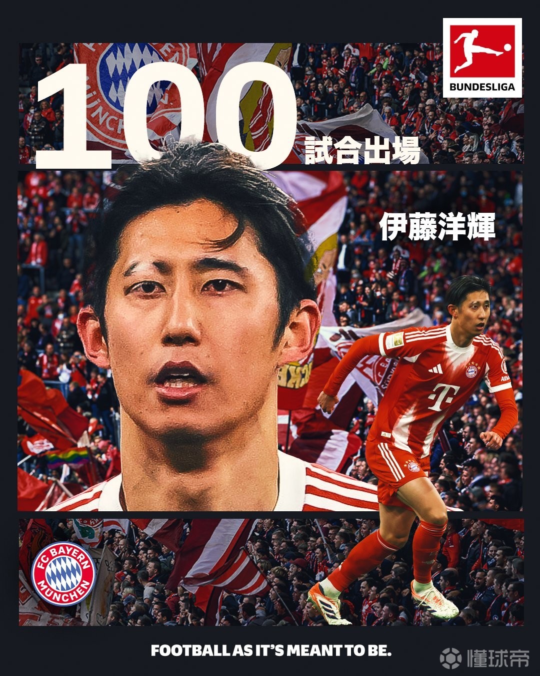 本场比赛,拜仁后卫伊藤洋辉替补出场,完成了自己的德甲100场里程碑。