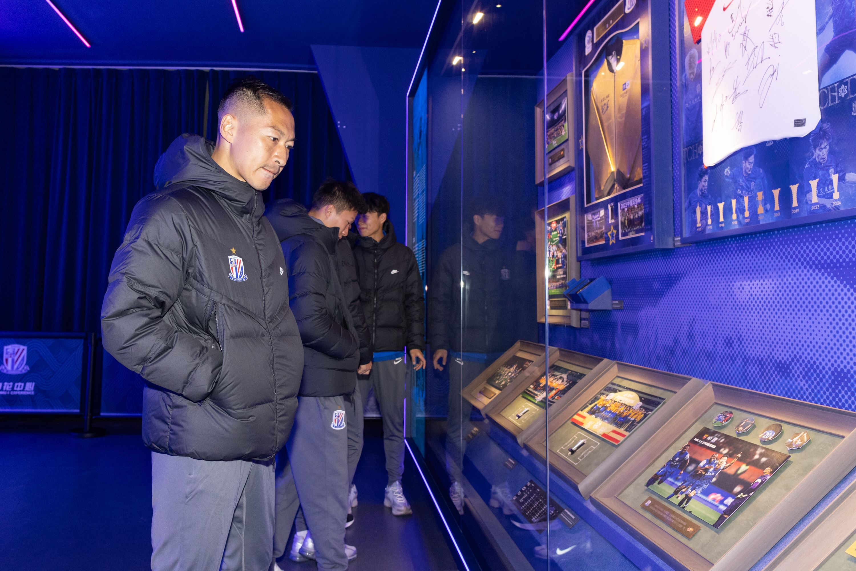 今天中午,申花全队集体参观了承载着三十余载历史与传承的“申花中心”。在申花中心的长廊中,教练和球员们通过一件件藏品、一帧帧画面、一幅幅实景,近距离了解感受申花的历史与文化传承。这也将激励着全体将士在即将开始的新赛季中发扬“申花精神”,为球队奉献自己的力量。