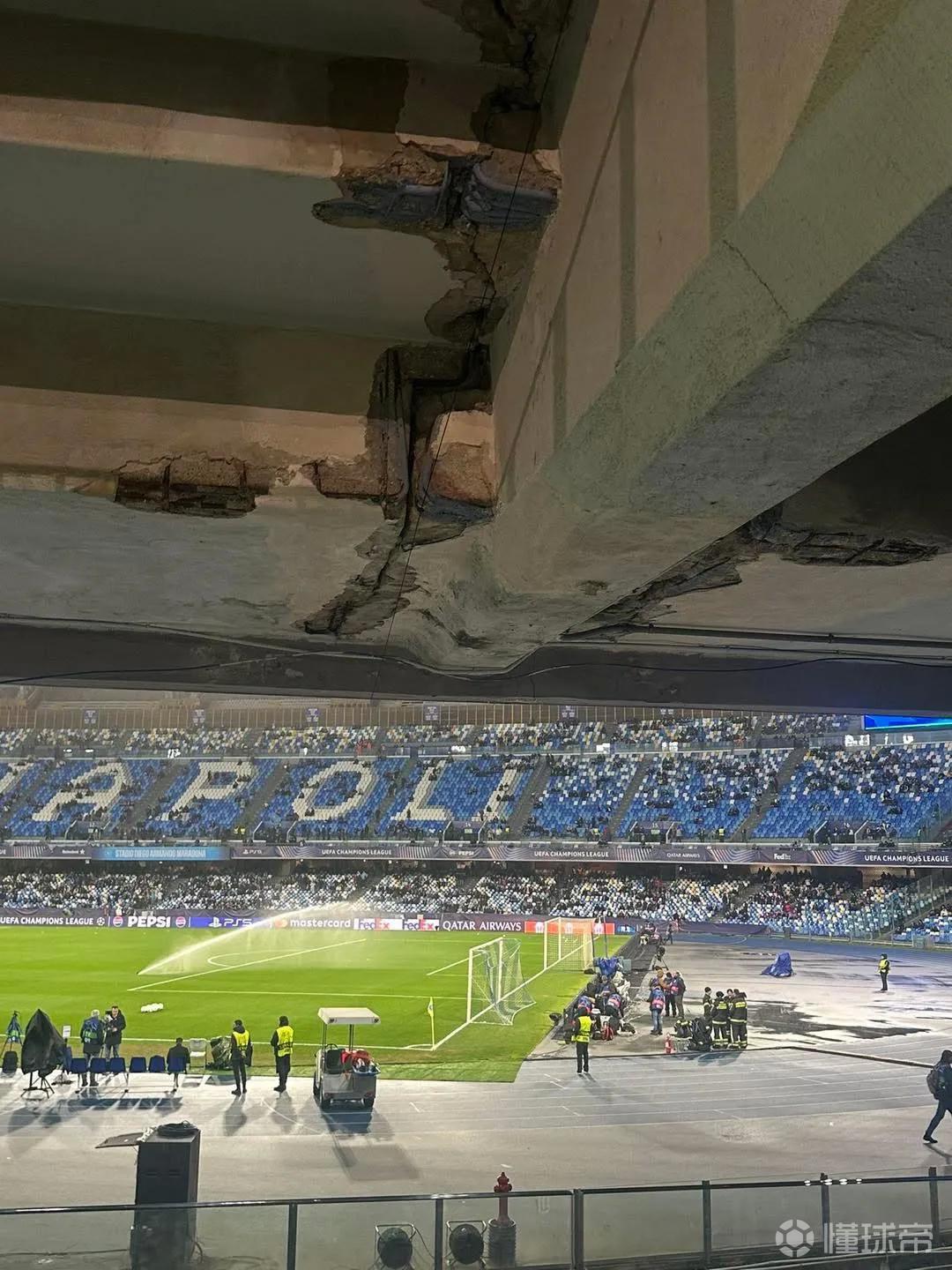 事情起因于近日在社交媒体上传播的一张照片。图片显示,在切尔西客场球迷区域上方的看台结构出现混凝土剥落、内部结构裸露等问题,引发广泛关注。一名网友发文称:“在对阵那不勒斯比赛中,切尔西球迷头顶上方的球场状况就是这样,看起来真的不妙。”相关评论迅速发酵,尽管有球迷调侃“喷点发泡胶就能解决”“只是小问题”,但也有人直言“这实在令人震惊”。