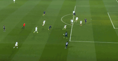第54分钟,门德斯左路传中,杜埃抢点差点碰到皮球