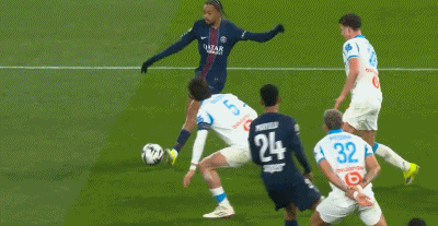 第12分钟,门德斯传中,登贝莱推射破门,巴黎1-0马赛