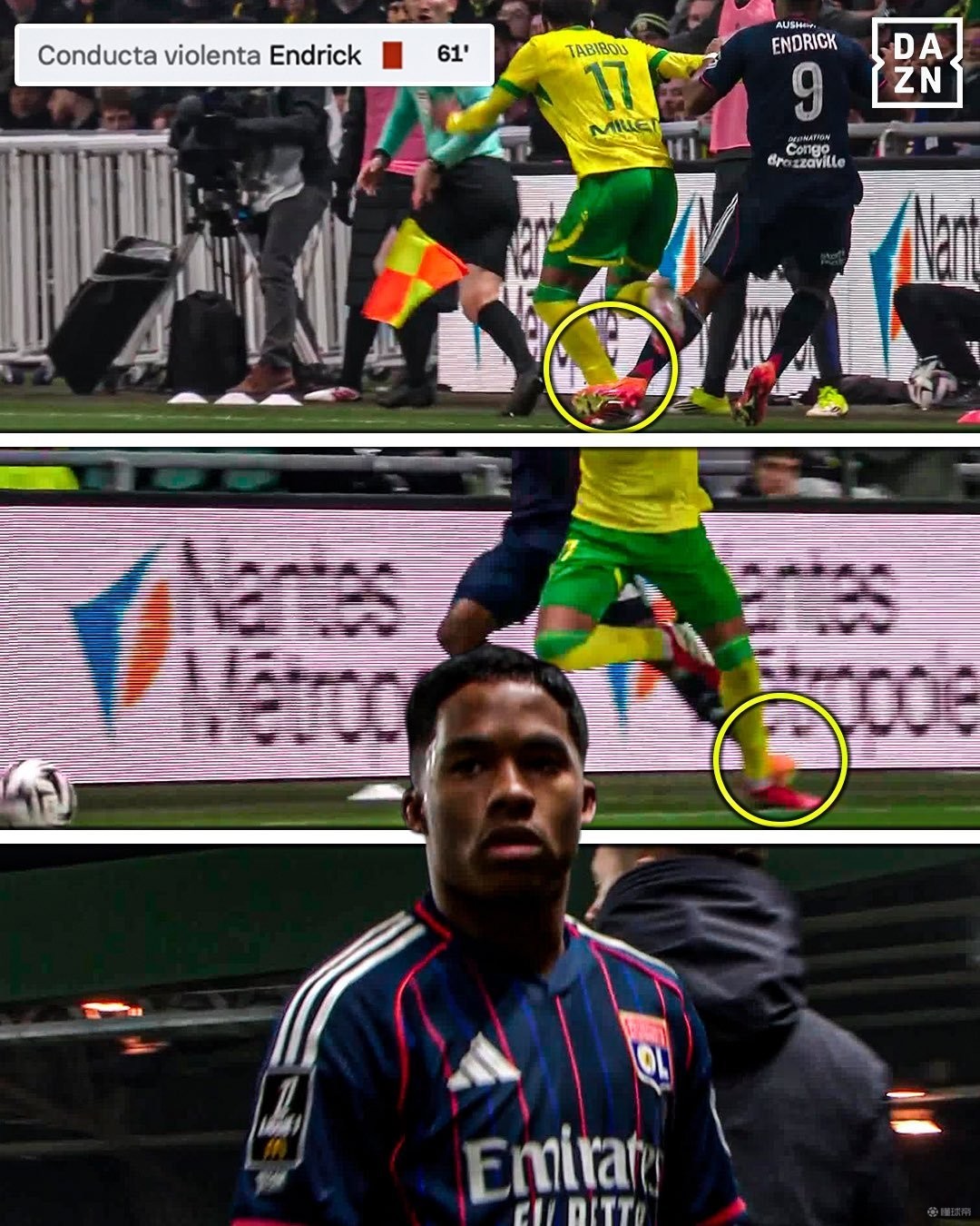 恩德里克在对阵南特的比赛中因一次动作被直接出示红牌。纪律委员会在重新观看比赛画面并审阅裁判提交的报告后,决定撤销红牌,改判为第二张黄牌,两黄变一红。因此,这名巴西球员仅需停赛一场。