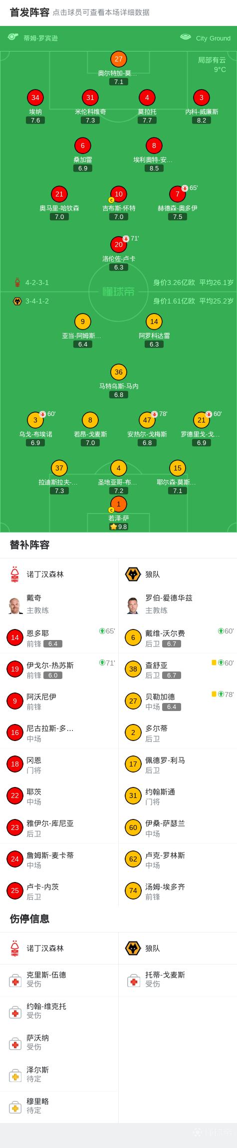 北京时间2月12日英格兰足球顶级联赛 联赛 第26轮,诺丁汉森林主场对阵狼队。上半场卢卡进球因传球的哈钦森越位被吹,下半场若泽-萨神扑建功。最终比分诺丁汉森林 0-0 狼队。