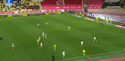 第45分钟,扳回一球,桑通兹后点抽射破门,南特1-3摩纳哥
