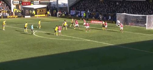 第33分钟,伯顿球员禁区内射门,球被阿雷奥拉扑住