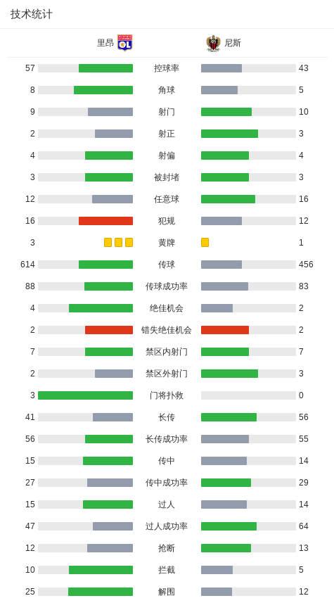北京时间2月16日法国足球甲级联赛第22轮,里昂主场迎战尼斯。比赛中,里昂球员完成两次破门,先是在半场结束后不久由托利索接队友传球建功,随后纳尔泰也打入一球。最终里昂以2-0的比分击败尼斯。