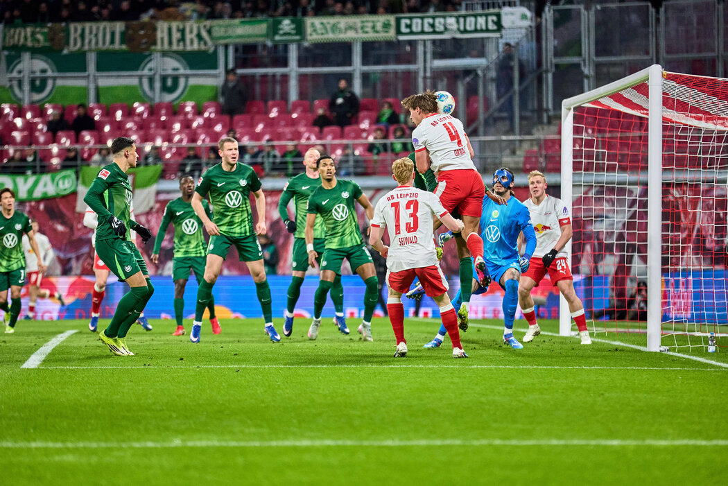 莱比锡RB开场便掌控主动,早早完成几次射门尝试,但格拉巴拉多次救险(7’、12’、20’)。狼堡防守紧凑,主要依靠转换机会寻找威胁。随着比赛推进,主队将绿白军团压得更深(28’),却没能取得领先,其中包括奥尔班的头球攻门偏差(32’)。格鲁达的射门也曾在无人盯防情况下被格拉巴拉挡出(42’)。凭借纪律性十足的防守表现,狼堡带着 0:0 进入中场休息(45’+3)。