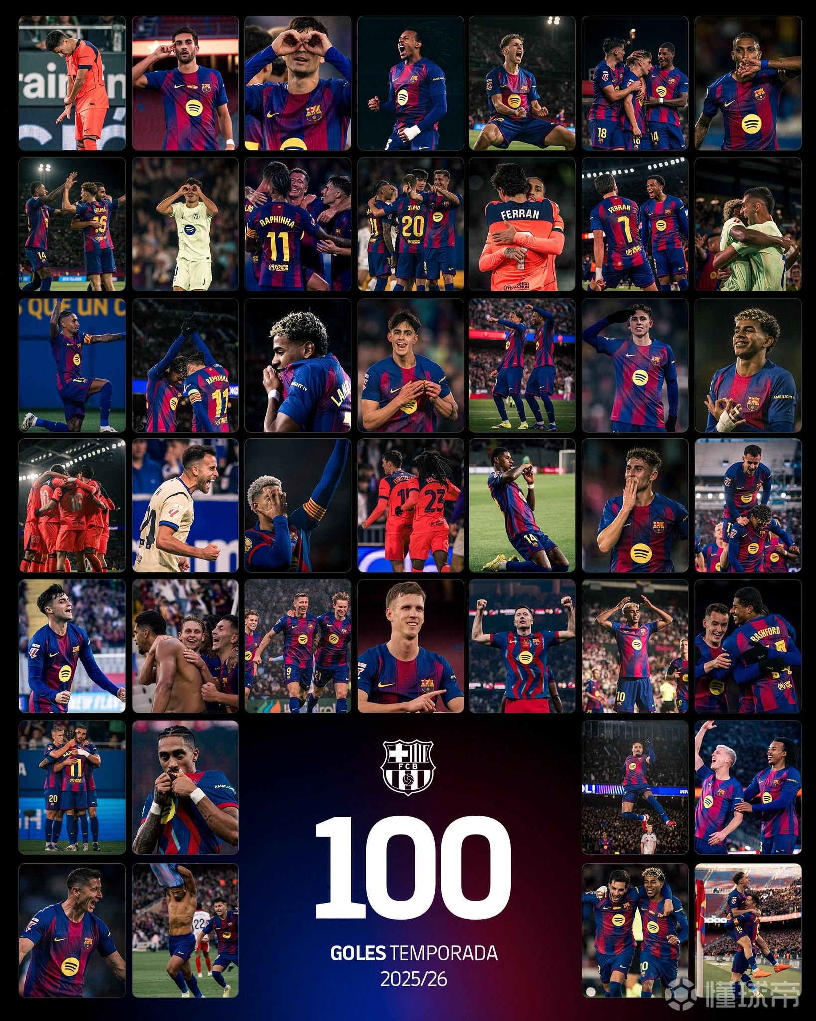 库巴西本场比赛的进球也是巴萨本赛季的第100粒进球,本轮战罢后,巴萨失去榜首,目前落后皇马2分。