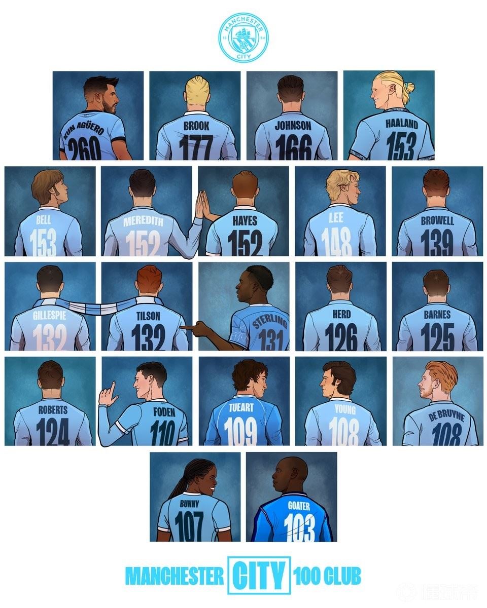 在与富勒姆的比赛中打入一球后,哈兰德曼城生涯已打入153球,这使得他追平队史传奇球员科林-贝尔,升至曼城队史射手榜第四位。