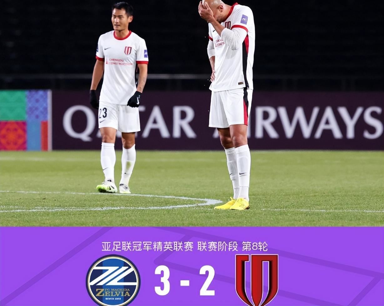 上半场,成都蓉城外援席尔瓦出现传球失误,町田泽维亚林幸多郎送出助攻,泰特-扬吉门前头球破门先下一城,成都蓉城0:1落后;随后白崎凌兵在禁区外不停球轰出世界波,帮助主队扩大比分,成都蓉城0:2落后;不久之后,町田泽维亚门将守田达弥停球失误,韦世豪抓住机会铲射破门,为成都蓉城扳回一球。下半场,桑山侃士传中助攻泰特-扬吉头球梅开二度,将比分再次拉开,蓉城1:3落后;比赛尾声,廖荣祥送出传中,费利佩头球破门再扳一分。最终,一场鏖战后,成都蓉城2:3不敌日本劲旅町田泽维亚,惨遭亚冠出局。